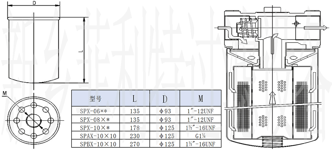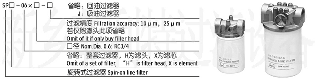 旋轉式管路過濾器 SPIN-ON LINE FILTER SERIES (一)特點 1、鋁合金濾頭 2、最高使用壓力0.7MPa 3、溫度使用范圍-30℃~90℃ 4、濾頭上設有安裝污染堵塞發(fā)訊器孔,以便檢測濾芯使用情況 (二)
