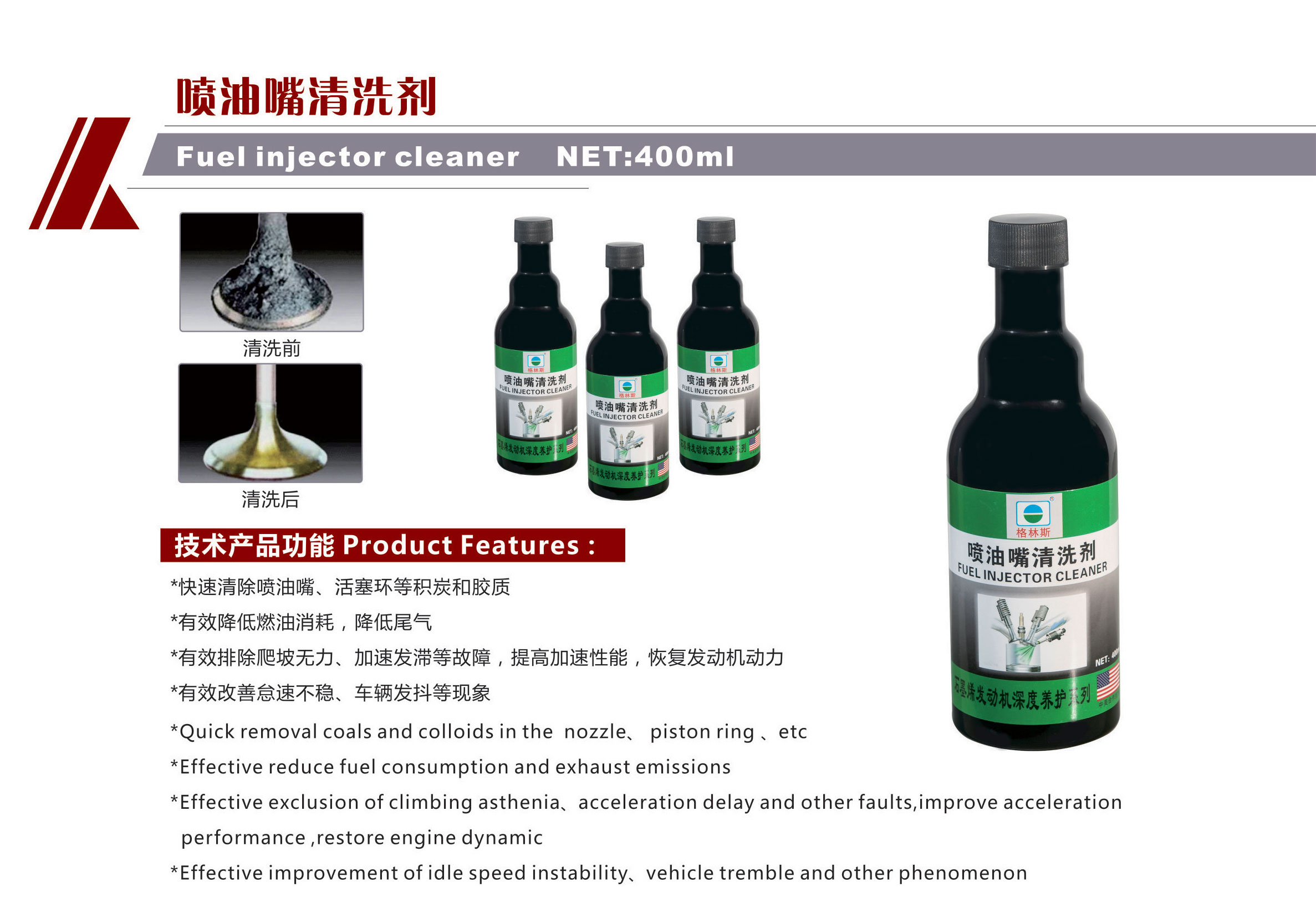 快速清除噴油嘴、活塞環等積炭和膠質。